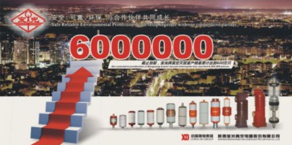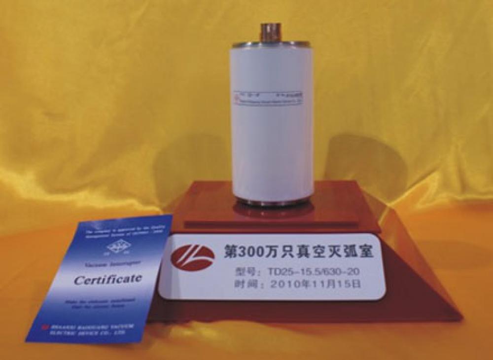 截止2014年,寶光牌真空滅弧室產(chǎn)銷量累計超過500萬只,年生產(chǎn)能力超過60萬只年出口真空滅弧室10萬只。