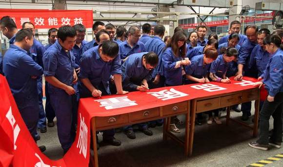 職工代表王道斌現(xiàn)場帶領(lǐng)大家高聲做出了“產(chǎn)品質(zhì)量是我們個(gè)人的尊嚴(yán)”鄭重承諾。