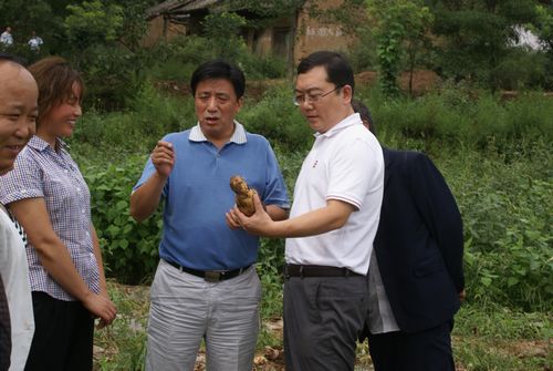 座談會后,麟游縣、招賢鎮(zhèn)及高莊村、大嶺村三級領(lǐng)導(dǎo),陪同付副書記及袁副總一行,實(shí)地考察了地膜玉米和地膜土豆扶助項(xiàng)目基地并在高莊村委會會議室進(jìn)行了座談。當(dāng)領(lǐng)導(dǎo)一行看到項(xiàng)目基地的農(nóng)作物長勢良好、豐收在望,感到十分欣慰,并就基地的管理、發(fā)展及農(nóng)副產(chǎn)品的銷售等,向2個(gè)村的干部對提出了建議和希望。