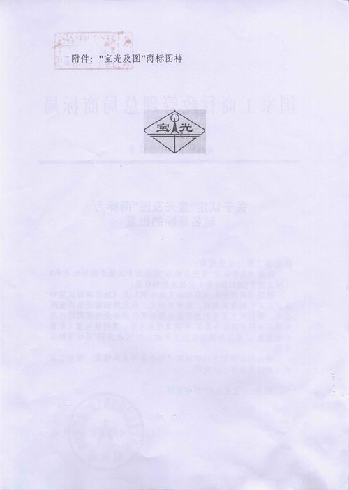 被中華人民共和國國家工商行政管理總局商標局認定為“中國馳名商標”,于2011年11月29日正式下發(fā)了《關于認定“寶光及圖”商標為馳名商標的批復》(商標馳字【2011】582號)文件)。