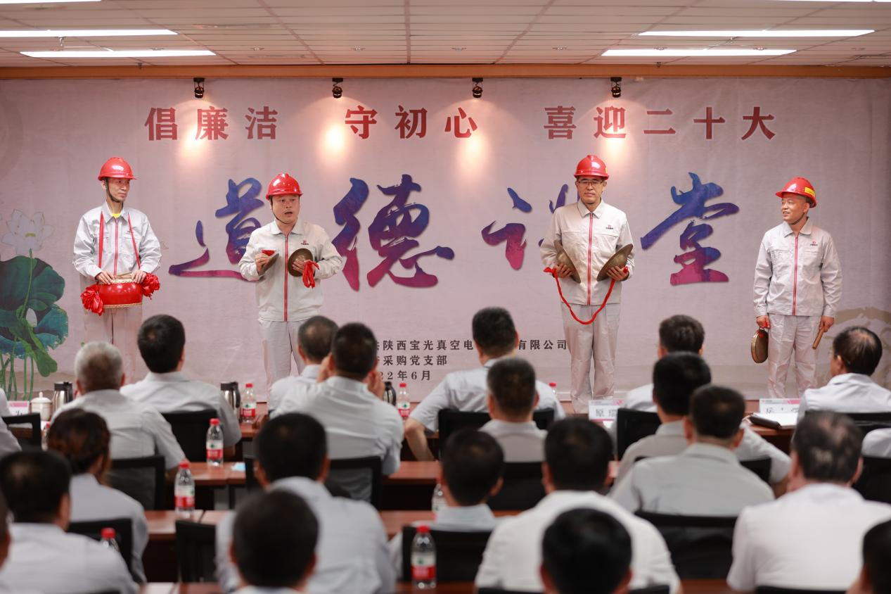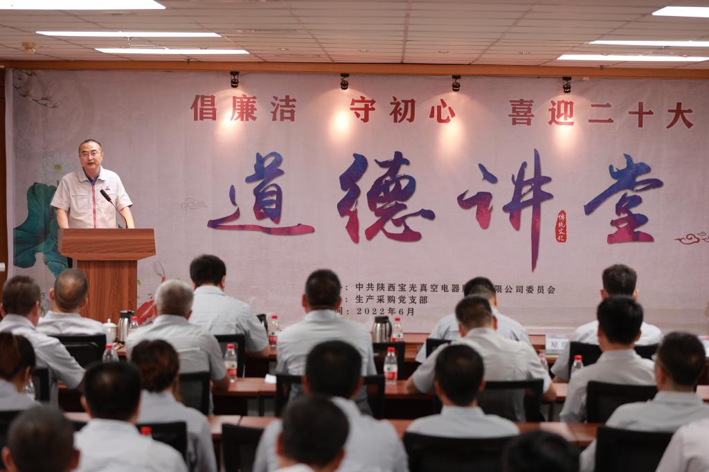 為將黨史學(xué)習(xí)教育不斷引向深入,全面提升廣大職工道德素養(yǎng),進一步促進企業(yè)精神文明建設(shè),切實激發(fā)廣大干部職工砥礪奮進、爭開新局的信心和決心,以更加飽滿的工作熱情迎接建黨101周年和黨的二十大的勝利召開,6月28日下午,由寶光股份黨委主辦,生產(chǎn)采購黨支部承辦的“倡廉潔、守初心、喜迎二十大”主題道德講堂如期舉行。