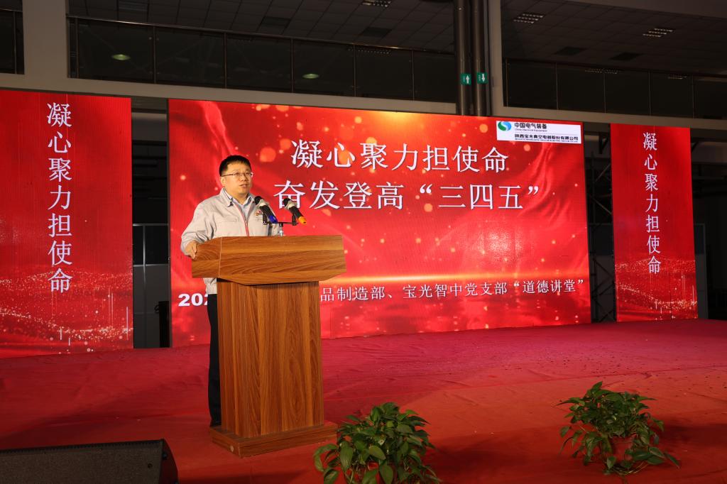 為提升廣大職工思想道德修養(yǎng),扎實推進企業(yè)精神文明建設(shè),進一步激發(fā)廣大干部職工齊心協(xié)力、干事創(chuàng)業(yè)、勇拓新局的信心和決心,以優(yōu)異成績完成“十四五”登高目標(biāo),12月8日下午,由寶光股份黨委主辦,滅弧室產(chǎn)品制造部黨支部、寶光智中公司黨支部聯(lián)合承辦的“凝心聚力擔(dān)使命,奮發(fā)登高‘三四五’”道德講堂活動順利舉行。寶光股份黨委書記、董事長謝洪濤,寶光股份黨委副書記、總經(jīng)理劉壯出席會議并作點評講話。