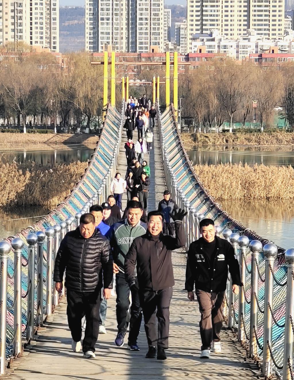 冬日里,雖寒風(fēng)微凜,但抵擋不住職工們的熱情。隨著出發(fā)指令的響起,健步行活動(dòng)正式拉開(kāi)帷幕。職工們精神抖擻、步伐堅(jiān)定,沿著既定路線(xiàn)有序前行。冬日暖陽(yáng)映照碧波,渭水兩岸生機(jī)盎然。一路上,大家歡聲笑語(yǔ),或三五結(jié)伴,相互鼓勵(lì),暢談工作生活趣事;或獨(dú)步當(dāng)先,挑戰(zhàn)自我。既有年輕職工沖鋒在前的活力,也有老員工堅(jiān)持不懈的執(zhí)著,更有團(tuán)隊(duì)間相互鼓勁的溫暖。歡聲笑語(yǔ)與矯健步伐交織,在近7公里的步行道上形成了一道亮麗的流動(dòng)風(fēng)景線(xiàn),展現(xiàn)了公司員工不懼難不畏險(xiǎn)、敢擔(dān)當(dāng)善作為的精神風(fēng)貌。