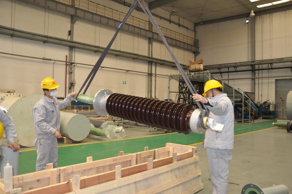要保證項(xiàng)目順利實(shí)施,生產(chǎn)全過程技術(shù)支持團(tuán)隊(duì)鉚足干勁、全力以赴。在這個(gè)年輕的團(tuán)隊(duì)里,許多人或新婚燕爾、或家有幼子,他們的職責(zé)是全程跟蹤生產(chǎn)和試驗(yàn),支援監(jiān)造隊(duì)伍,做好現(xiàn)場(chǎng)技術(shù)支持,加班加點(diǎn)、不分晝夜、長期出差已是家常便飯,但他們無怨無悔。董春雷就是這個(gè)團(tuán)隊(duì)的一員。出線裝置是±800kV套管試驗(yàn)用關(guān)鍵設(shè)備,直接影響產(chǎn)品試驗(yàn)的順利進(jìn)行,為此,董春蕾與同事們一起到零部件廠家監(jiān)造40余天。由于水土不服,董春蕾出現(xiàn)了過敏反應(yīng),全身奇癢難耐,他強(qiáng)忍著身體不適堅(jiān)持完成了任務(wù)?!爱?dāng)時(shí)是挺難受的,但想到時(shí)間緊、任務(wù)重,一旦延誤,就會(huì)影響套管產(chǎn)品如期交付,影響國家重點(diǎn)項(xiàng)目建設(shè)進(jìn)度,我必須咬緊牙關(guān),不能拖后腿,更不能掉隊(duì)。”生產(chǎn)中心主任劉宜斌幾乎每天都堅(jiān)守在車間或生產(chǎn)現(xiàn)場(chǎng),了解員工狀態(tài)、關(guān)心員工需求;副主任金濤隨時(shí)關(guān)注生產(chǎn)進(jìn)度是否與計(jì)劃有出入,隨時(shí)協(xié)調(diào)解決各類問題……